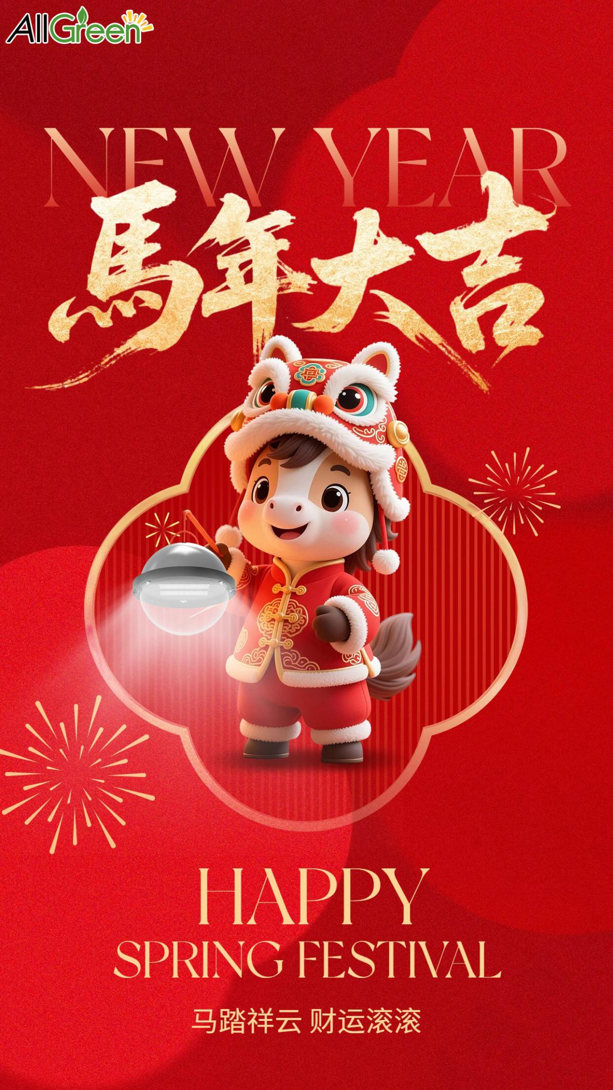 W związku z rozpoczynającym się jutro świętem Nowego Roku Księżycowego firma AllGreen Lighting chciałaby skorzystać z okazji i złożyć najserdeczniejsze życzenia z okazji nadchodzącego Nowego Roku.Rok Ognistego Koniawszystkim naszym klientom, partnerom i przyjaciołom na całym świecie.
